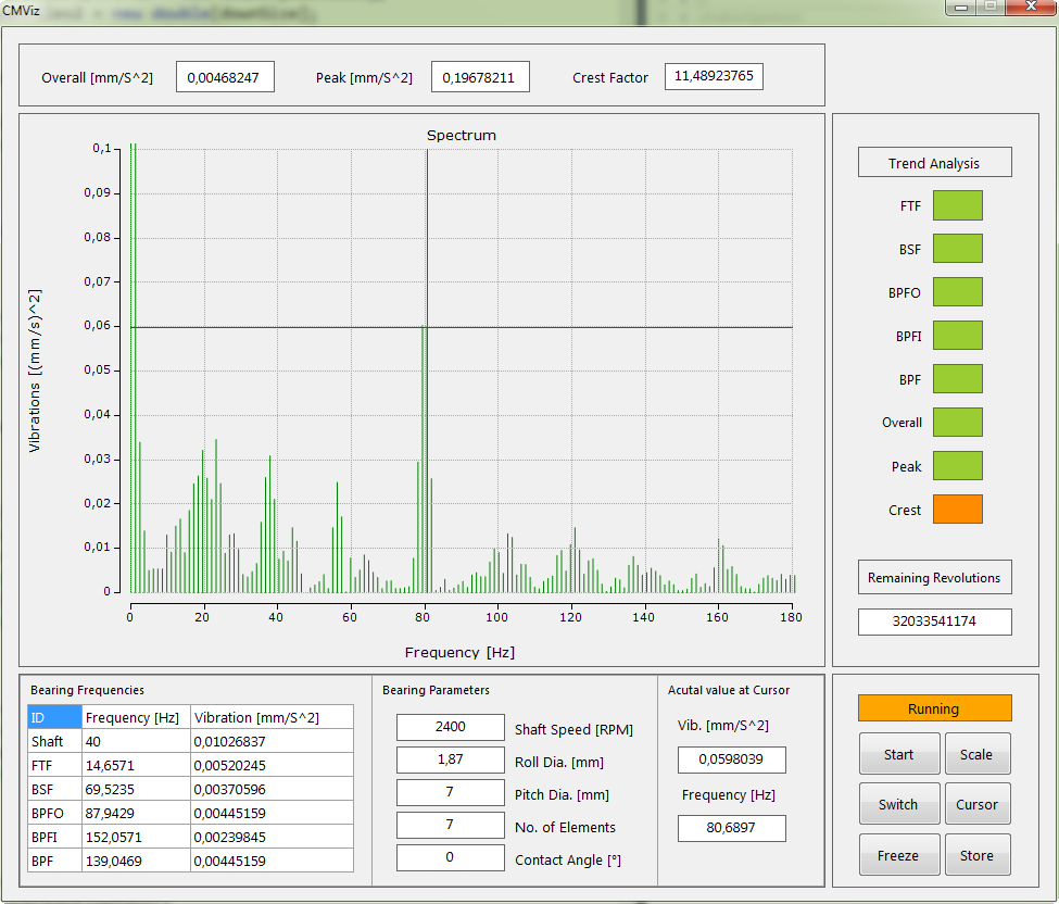 産品特點:我們采用(yòng)基于PC控制(zhì)的(de)CPU強大(dà)的(de)數(shù)據處理(lǐ)能(néng)力,搭載EtherCAT高(gāo)速通(tōng)訊總線獲取時(shí)域數(shù)據,最快(kuài)可(kě)達50Kb/s的(de)采樣速率。同時(shí)針對(duì)時(shí)域數(shù)據的(de)處理(lǐ)有(yǒu)豐富的(de)接口函數(shù)可(kě)以進行(γxíng)計(jì)算(suàn),包括但(dàn)不(bù)限于常規頻(pín)譜計(jì)算(suàn)、包絡譜計(jì)算(suàn)、功率譜♦計(jì)算(suàn)、RMS計(jì)算(suàn)、功率因子(zǐ)計(jì)算(suàn)及離(lí)散歸類分(fēn)析等。